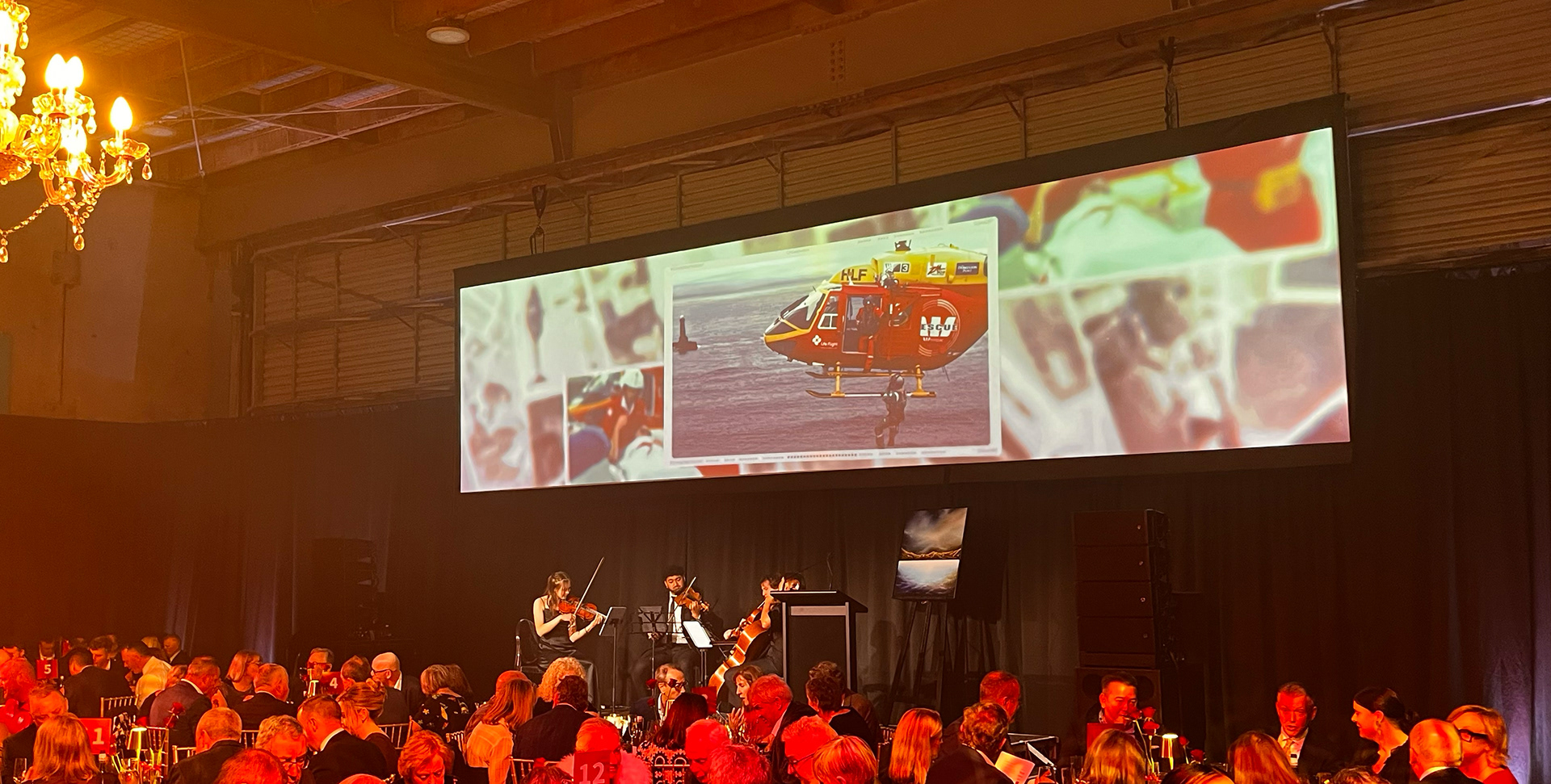 The scope covered title sequences, sponsor animations, background loops, a range of auction asset and a slideshow celebrating the 50 years of services, all developed to suit the tone and significance of the evening.